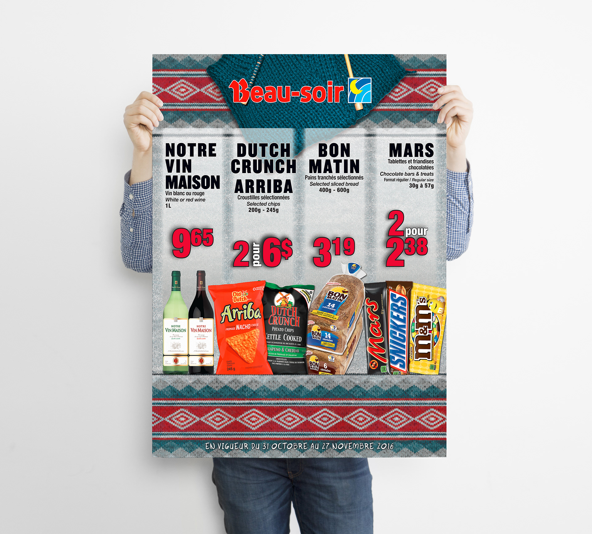 Voici du matériel de mise en marché que j'ai créé pour la bannière des dépanneurs Beau-soir. Les promotions régulières comprenaient un petit catalogue de prix, des cartons prix, des affiches et parfois des carton-tente et des danglers.